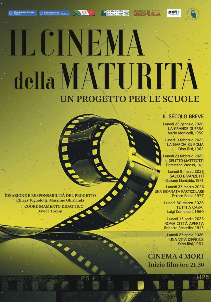 Il Cinema protagonista a Livorno attraverso “Il Cinema della Maturità”, progetto dell’Ufficio Scolastico in collaborazione con il Dipartimento di Civiltà e Forme del Sapere dell’Università degli Studi di Pisa, il Centro Studi Commedia all’italiana e il contributo della Banca di Castagneto.