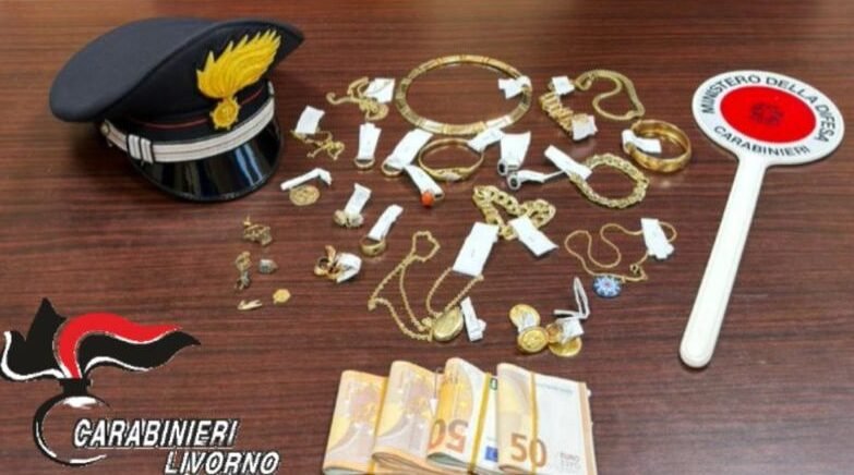 Nel corso di un servizio svolto in abiti civili, i carabinieri hanno notato un uomo uscire da un condominio del centro con fare sospetto e una busta in mano messa poi all’interno di una borsa. I militari lo hanno seguito e visto salire su un’autovettura risultata poi noleggiata nel capoluogo campano. Dopo essersi diretto verso Pisa, l’auto è stata fermata grazie alla collaborazione di una pattuglia dei carabinieri di Migliarino Pisano. L’uomo è apparso fin da subito nervoso. Dalla perquisizione sono stati trovati 5.000 euro in contanti e 300 grammi di monili in oro aventi un valore di mercato stimato in circa 40.000 euro. Considerate le circostanze e l’impossibilità di giustificare il possesso di tali beni, ritenuto quindi responsabile del reato perpetrato all’interno della palazzina dalla quale era stato visto uscire, il giovane è stato portato nella caserma di viale Fabbricotti per ulteriori accertamenti.