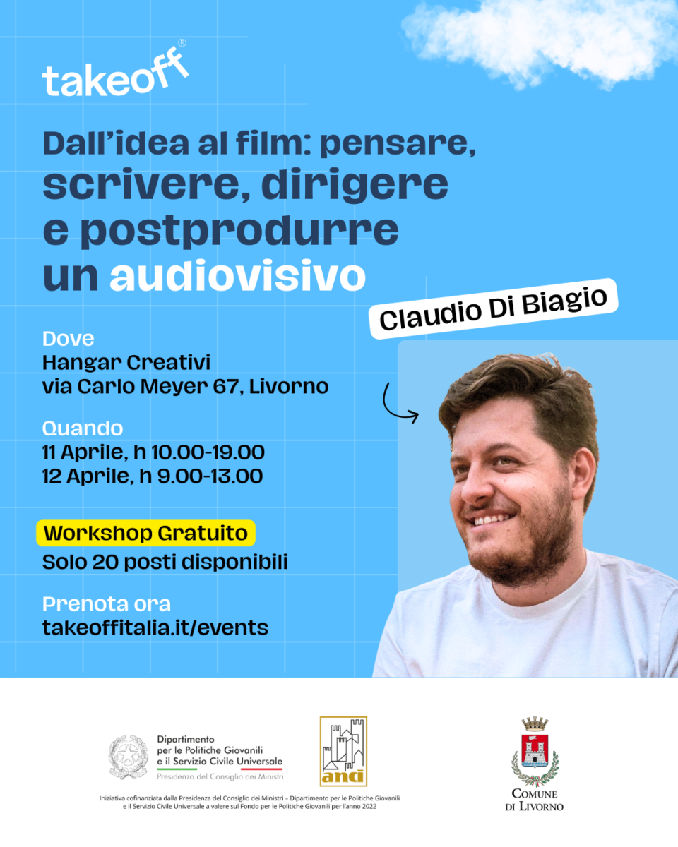Come si trasforma un’idea in un prodotto audiovisivo finito? L’11 e 12 aprile 2026, gli Hangar Creativi di Livorno ospitano Claudio Di Biagio, regista e autore per Prime Video, Rai e Netflix (direttore della prima serie TikTok Original italiana), per un workshop intensivo di 12 ore che copre l’intero processo: sceneggiatura, regia, linguaggio visivo, montaggio e postproduzione.
