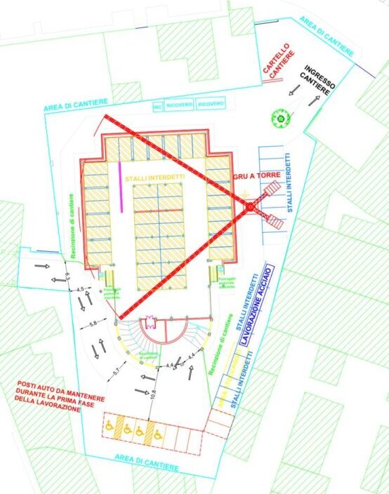 Per ragioni di sicurezza, al fine di evitare interferenze tra mezzi operativi e pedoni in transito, ed interferenze con la traiettoria del braccio della gru, fino al 31 marzo, data presunta di fine lavori, è interdetta la sosta (ordinanza comunale n. 8262/2025) al piano seminterrato (da dove partiranno le prime lavorazioni sulla struttura) e sul piazzale esterno, ad eccezione di alcuni posti sul lato sud, tra cui quelli per disabili (vedi planimetria allegata).