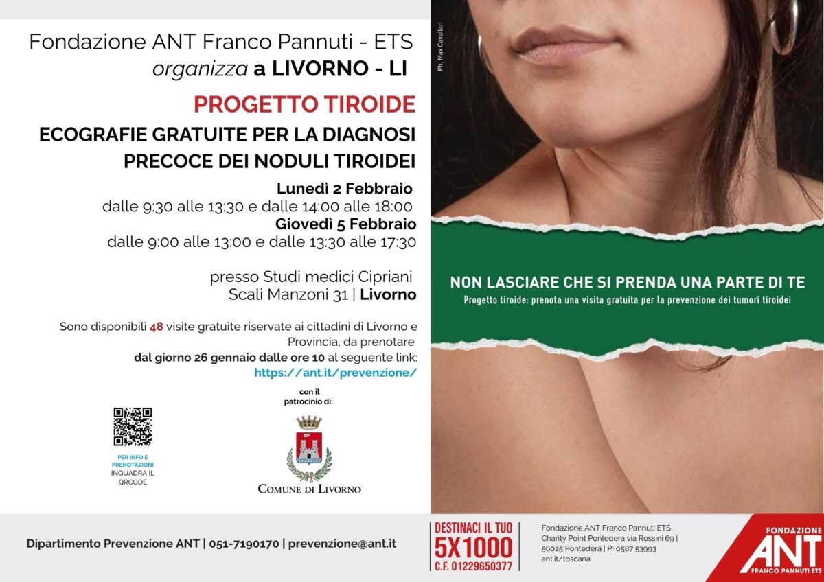 Con questo progetto saranno a disposizione visite ecografiche gratuite, che hanno l’obiettivo di individuare eventuali noduli sospetti che necessitino di ulteriori approfondimenti diagnostici, per la prevenzione dei tumori della tiroide Il progetto ha ricevuto il patrocinio del Comune di Livorno.