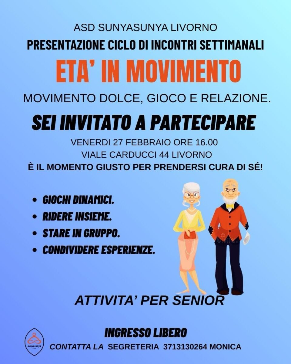 C’è un nuovo modo di intendere la vitalità, e ha mosso i suoi primi passi ufficiali venerdì 27 febbraio presso l’ASD SunYaSunYa di viale Carducci 44. Con la presentazione del nuovo ciclo di incontri di “Età in Movimento”, si è aperto un orizzonte dedicato a chi crede che la maturità sia il momento perfetto per riscoprirsi, restando attivi e, soprattutto, connessi con gli altri.