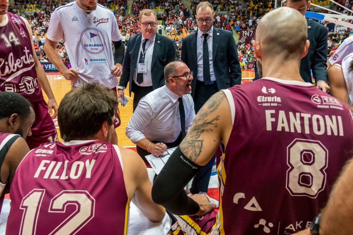 La Bi.Emme. Service Libertas Livorno si è specializzata in rimonte. Dopo Brindisi anche Bergamo cade al Modigliani Forum dopo aver condotto per larghi tratti la partita. Il successo è tutto da dedicare al Presidente Marco Benvenuti, arrivato venerdì mattina dagli Stati Uniti e presente nel parterre, ed anche alla famiglia Barghigiani che ha sposato la causa amaranto abbinando per il secondo anno consecutivo il proprio brand alla Libertas. Ed il nuovo title sponsor ha portato fortuna. Fortuna ha portato anche la presenza del neo ctazzurro Luca Banchi, acclamato dai 4000 dei Modigliani Forum.