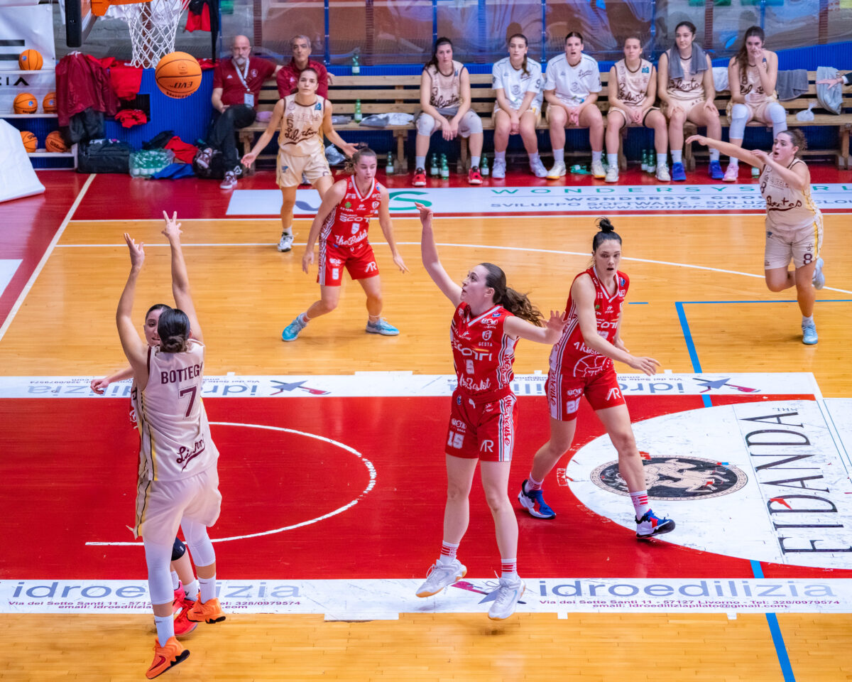 Il Jolly Acli Basket Livorno lotta, resta in partita per lunghi tratti, ma deve arrendersi a una solida USE Rosa Scotti Empoli, che passa al PalaCosmelli 58-72. Le oro-amaranto partono con buona energia e approcciano bene la gara (Marangoni subito “in palla”), ma nel secondo quarto subiscono un pesante parziale di 11-0 che permette alle ospiti di andare all’intervallo in vantaggio. A complicare ulteriormente la situazione arriva l’infortunio alla mano di Cruz, costretta a lasciare il campo.