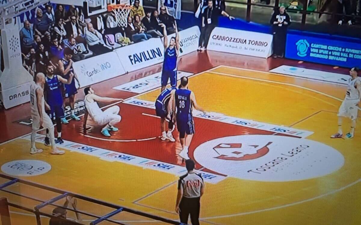 Nocera è squadra giovane, fresca, veloce. Viene da cinque vittorie nelle ultime sei e gioca senza paura. Il piano partita dei campani è quello di collassare la difesa sotto canestro, obbligando la Pielle a prendere molte conclusioni dal perimetro. Nel basket, si sa, puoi vedere il canestro largo come un’autostrada o stretto come la cruna di un ago: i biancazzurri partono bene, ma poi le percentuali, fatalmente, scendono. Nel solo primo tempo sono 15 i tentativi da oltre l’arco, con soltanto cinque che baciano la retina: non abbastanza per mettere le mani sulla partita, Nocera trova punti dagli ispiratissimi Truglio e Saladini (bravo davvero) mentre dall’altra parte Turchetto pesca a piene mani dalla panchina lunghissima, affidandosi alle fiammate di Mennella, alla solidità di Gabrovsek e a un Klyuchnyk nelle inedite vesti di tiratore dalla distanza. Equilibrio, dunque: piccolo strappo Pielle a più sette e rientro campano: 41-39 all’intervallo lungo, con qualche topica arbitrale che fa schiumare di rabbia il Palamacchia.