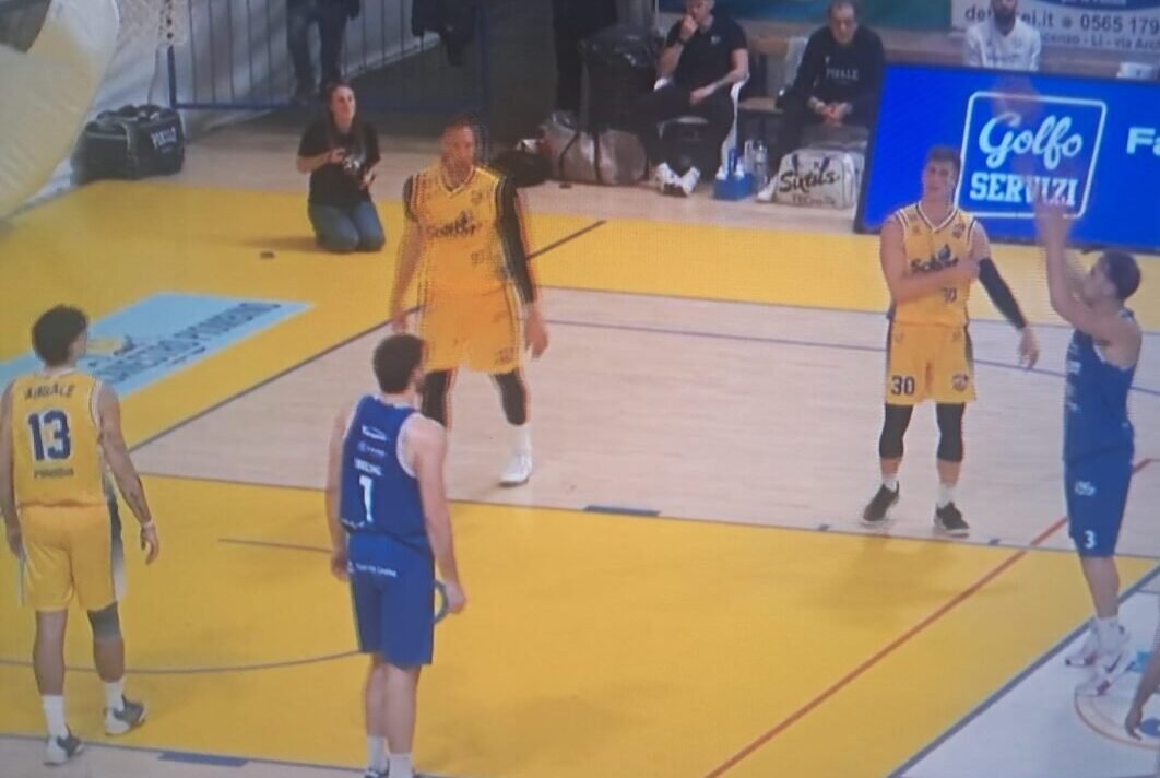 L’inizio è uno shock. Un vero shock. Piombino allunga la sua difesa, mena le mani, isola Leonzio, pressa Venucci, rende difficili i servizi sotto canestro. La Pielle non ci capisce niente: 13-2 per il Golfo in quattro minuti, con tre triple aperte e Kluychnyk già a quota due falli. Si sapeva che un derby non è mai facile, ma così… Il time out di Turchetto è un’operazione chirurgica, e il malato si rialza in piedi. Con Mennella e Alibegovic la difesa inizia a mordere, in attacco Leonzio e Campori producono 10 punti in coppia. Una tripla fantascientifica di Venucci impatta il match sul 23-23 allo scadere del primo quarto.